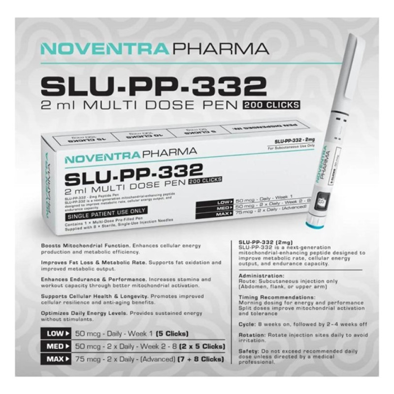 Noventra Pharma SLU-PP-332 2mg – A next-generation mitochondrial-enhancing peptide designed to improve metabolic rate, endurance, and cellular energy. Multi-dose 200-click pen for precise daily dosing without stimulants.